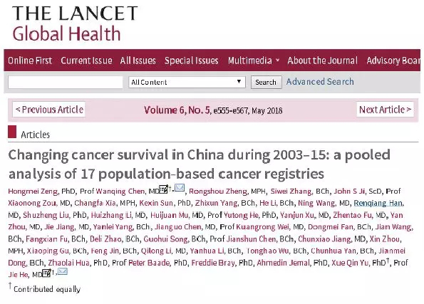 由國家癌癥中心(NCC)赫捷院士、陳萬青教授領(lǐng)銜發(fā)表于《柳葉刀·全球衛(wèi)生》雜志的一項(xiàng)統(tǒng)計(jì)學(xué)研究表明,我國17個(gè)癌癥登記處覆蓋人群的癌癥生存率在2003-2015年間呈總體顯著增加的趨勢,從2003-2005年到2012-2015年,年齡標(biāo)準(zhǔn)化5年相對生存率在大多數(shù)癌種均有所增加,其中隨時(shí)間推移生存率穩(wěn)定增長且增幅最大的是子宮體癌(每個(gè)時(shí)間段平均變化率5.5%)、甲狀腺癌(5.4%)、宮頸癌(4.5%)、骨腫瘤(3.2%)。僅胰腺癌和膽囊癌未觀察到生存率改善。