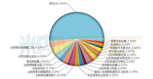 圖3:2017年中國公立醫(yī)療機(jī)構(gòu)終端抗腫瘤和免疫調(diào)節(jié)劑格局
