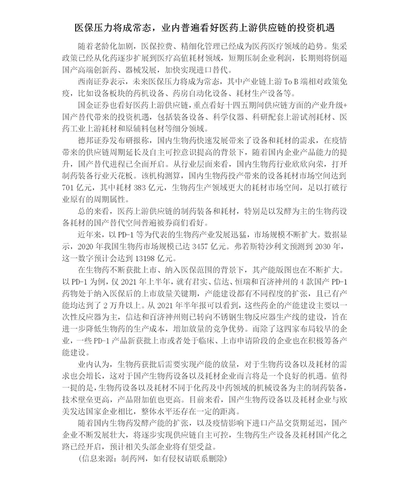 醫(yī)保壓力將成常態(tài),業(yè)內(nèi)普遍看好醫(yī)藥上游供應(yīng)鏈的投資機(jī)遇