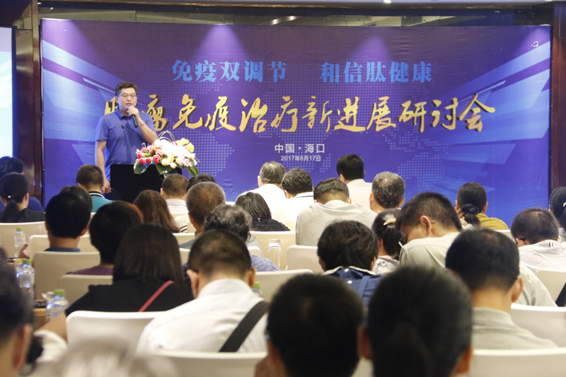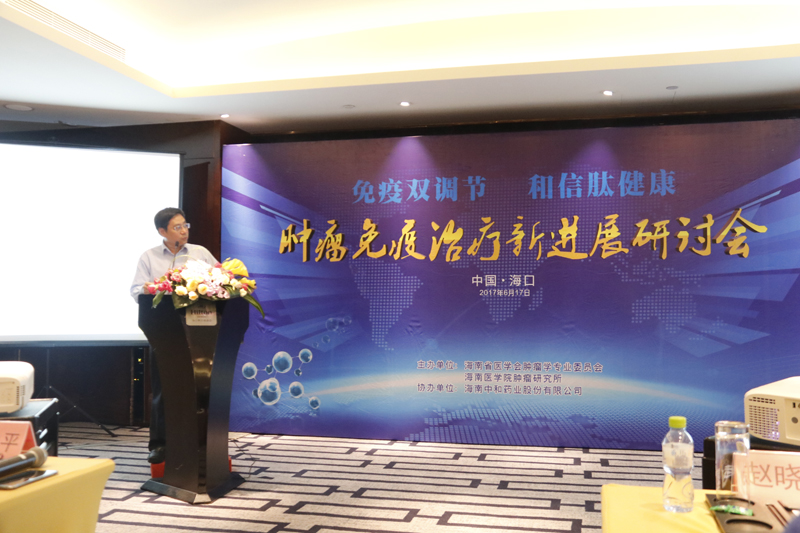 2017年6月17日,在有著迷人的碧海藍天,旖旎的海底世界,樸實的風土人情的椰城,腫瘤免疫治療新進展研討會在??谙栴D酒店拉開帷幕。本次會議由海南省醫(yī)學會腫瘤學專業(yè)委員會、海南省醫(yī)學院腫瘤研究所主辦,海南中和藥業(yè)股份有限公司協(xié)辦。海南省醫(yī)學會腫瘤學專業(yè)委員會主任委員夏立平教授擔任大會主席,近200名腫瘤免疫方面專家、醫(yī)生參與此次盛會。