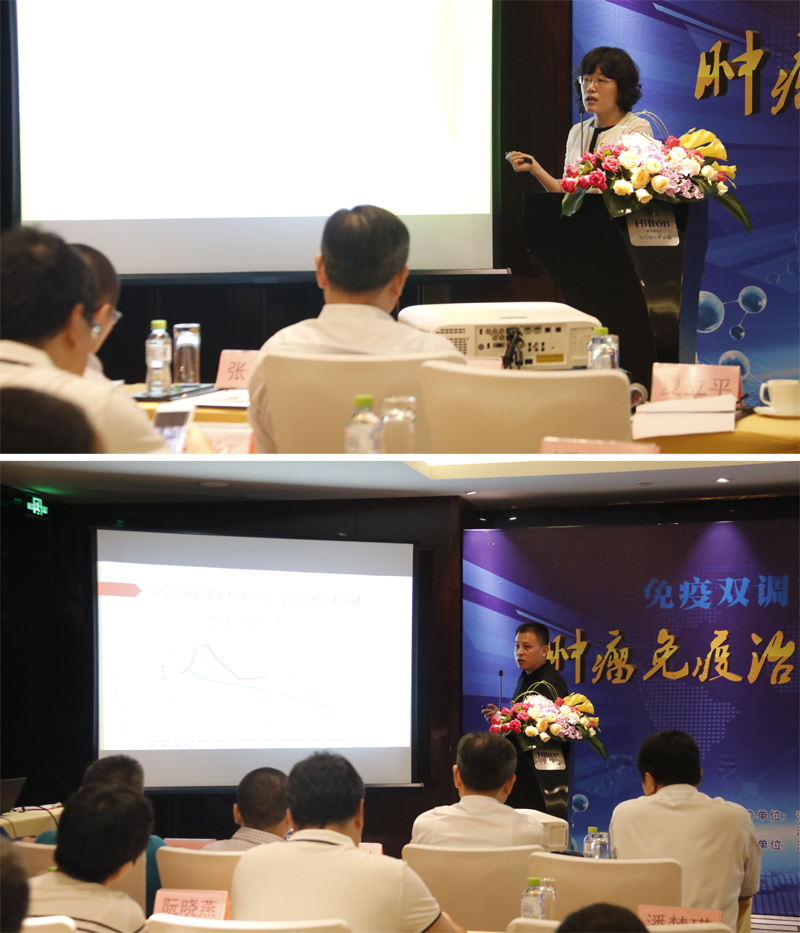 首都醫(yī)科大學附屬復興醫(yī)院要潔教授、海南醫(yī)學院附屬醫(yī)院孫龍教授從臨床應用角度,分別以“胸腺五肽在腫瘤科的應用”和“胸腺五肽在感染方面的應用”為題做了精彩的講述。主題報告過程中,各專家深入淺出、引據(jù)相關案例針對當前腫瘤免疫專業(yè)領域最受關注、對臨床醫(yī)生最有幫助的諸多熱點問題為與會人員進行報告,并與在座人員展開了熱烈的討論。最后會議在一陣陣熱烈的掌聲中圓滿結(jié)束!