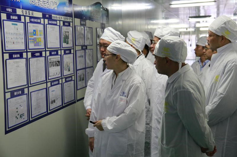 制劑生產(chǎn)總監(jiān)武俊向丁市長介紹公司精益管理情況