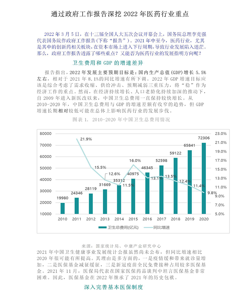 通過政府工作報(bào)告深挖2022年醫(yī)藥行業(yè)重點(diǎn)