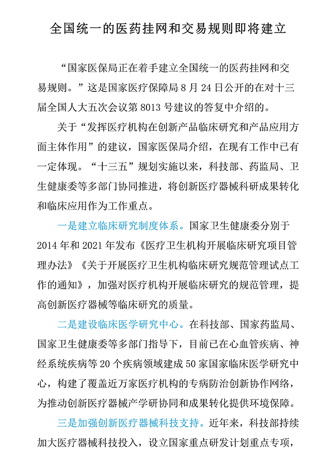 全國(guó)統(tǒng)一的醫(yī)藥掛網(wǎng)和交易規(guī)則即將建立