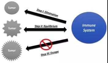 3. 逃逸——此階段的腫瘤細胞能夠完全戰(zhàn)勝宿主免疫系統(tǒng)機制,逃避以后的免疫監(jiān)視。