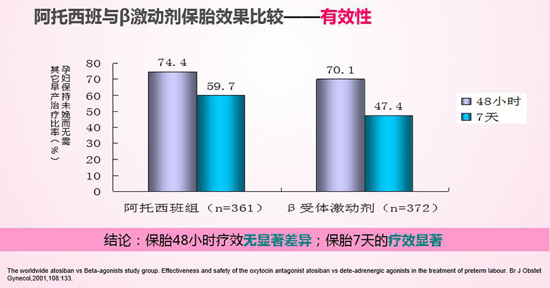 1.阿托西班保胎7天的效果明顯,優(yōu)于β-受體激動劑。